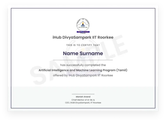 Begin your Artificial Intelligence & Machine Learning journey with a beginner-friendly, industry-aligned curriculum from iHub DivyaSampark IIT Roorkee, delivered in Tamil. Starting with foundations in Python, data analysis, and machine learning workflows, and progressing to Generative AI, RAG, and AI agents, the programme builds practical, job-relevant skills through hands-on projects and expert-led learning.